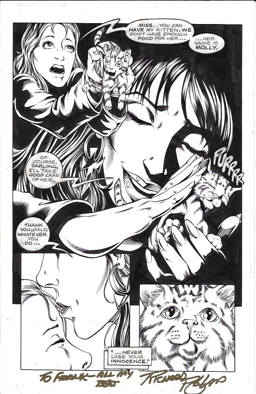 Categories: All Inks Commissions All | Inks | Commissions | Little Orphan Annie Sunday paper Color guide 8/23/1925 $150.00 Uncle Scrooge Lithograph, Artist Carl Barks $4,500.00 Astro City #43 preliminary Cover Artist Alex Ross $1,500.00 Young Lust #4 Cover Jay Kinney $5,000.00 Animation cell for cereal commercial $300.00 Care Bears Animation cell $500.00 Superman Radio Shack Promotional Curt Swann Curt Swann Artist $500.00 Popeye issue 41, pg 3 artist Bob Sagendorf $300.00 Wizards Animation cell, Red Rider against War Demon Artist Ralph Bakshi $600.00 Wizards Animation cell, Red Rider Artist Ralph Bakshi $500.00 Uncanny X-men Issue 177, Page #4, penciller John Romita Jr., Inker: John Romita Sr $10,000.00 Scarlet Pilgrim issue 1 , Page , Trina Robbins $3,500.00 Wolverine animation cell from X-men animated series $750.00 Teen-age Mutant Ninja Turtles Animation cell $500.00 9. Omaha the Cat Dancer Commission Reed Waller $3,000.00 The Score issue 2, page 24 Artist: Mark Badger (duplicate) $250.00 The Score issue 4 page 2 Artist: Mark Badger $250.00 The Score issue 3 page 35 Artist: Mark Badger $250.00 The Score issue 3 page 19 Artist: Mark Badger $250.00 The Score issue 2 page 20 Artist: Mark Badger $250.00 The Score issue 2, page 24 Artist: Mark Badger $250.00 The Score Issue 2, Cover - Artist: Mark Badger $500.00 Mark Smylie - Artesia: Afire issue 5, page 2 $800.00 Mark Smylie - Artesia issue 5, page 1 $800.00 Mark Bright - Batman issue 449, Page10, Randy Emberlin inks $300.00 Tom K. Ryan - Tumbleweeds Sunday strip $900.00 Tom K.Ryan - Tumbleweeds Sunday strip $900.00 Tom K. Ryan - Tumbleweeds daily strip $400.00 John Liney - Henry Daily comic strip $150.00 John Liney - Henry Daily comic strip $150.00 Greg Land - Birds of Prey: Black Canary/Batgirl issue 1, page 26 $600.00 Dan Decarlo - Archie’s Joke Book issue 139, page 38 $150.00 John Buscema - Savage Sword of Conan Issue, Page 22 $3,000.00 Stuart Immomen - Legion of Superheroes Vol 4, issue 60, page 4, Ron Boyd Inker $500.00 Stuart Immomen - Empress issue 2, page 12 $300.00 Adam Hughes - Cover Gun Honey $25,000.00 Adam Hughes - Phoenix commission, T.S. inks $18,000.00 Jack Kirby - The Demon issue 15, page 10 $5,000.00 Mark Buckingham - Fables issue 118, page 6. Andrew Pepoy inker $600.00 Mark Buckingham - Fables issue 8, page 4. Steve Leialoha inker $600.00 Mark Buckingham - Fables issue 8, page 3. Steve Leialoha inker $600.00 Mark Badger - American Flagg issue 43, page 20 $300.00 Mort Walker - Beetle Bailey Daily Comic Strip 3/30 $800.00 Paul Gulacy - Sci Spy issue 4, page 2//DC/Vertigo Jimmy Palmiotti inks $600.00 John Delaney - Adventures of the DC Universe issue 6, page 21, Ron Boyd Inker $250.00 Colleen Doran - Wonder Woman: Once and Future Story ISSUE 1 Page 5, Jackson Guice inker $600.00 Richard Pollard - PEC Warhawk commission $150.00 Richard Pollard - Stryke issue 0, Page 5 $350.00 Richard Pollard - Lost Colony trading card illustrations $300.00 Richard Pollard - Razor issue commission $450.00 Richard Pollard - Razor issue 14, page 10 $200.00 Richard Pollard - Razor issue 15, Page 20 $400.00 Richard Pollard - Razor issue 15, Page 16 $300.00 Kevin Sharpe - Black Panther Commission $150.00 Kevin Sharpe - Black Panther Commission $250.00 Kevin Sharpe - Black Panther Commission $250.00 Kevin Sharpe - Cross Gen, Mystic issue12, Page 11 $300.00 Kevin Sharpe - Cross Gen, Mystic issue12, Page 19 $300.00 Kevin Sharpe - Cross Gen, Mystic issue12, Page 18 $300.00 Kevon Sharpe - DC Book issue1, page 10 $300.00 Kevin Sharpe - Cross Gen, Sigil issue 8. page 4 inker- Randy Elliott $300.00 Kevin Sharpe - Image, GI Joe Issue 14, page 2 $300.00 Kevin Sharpe - DC, Legion of Superheroes vol, issue 8, page 23, inks, P Rollins $300.00 Kevin Sharpe - Marvel, Xtreme X-men Savageland issue 3, page 8 $400.00 Kevin Sharpe - DC Showcase issue 12, Page 1(splash), inks Dave Bednar $750.00 Kevin Sharpe - Vampirella issue 10, Page #2. Inks Rod Ramos $500.00 Chris Sprouse - Pencils, Karl Story inks- Tom Strong issue 8, Page 23 $800.00 Bob McLeod - Pencils, John Beaty inks Wolverine/Cerebus Commission $750.00 Mark Bagley - Captain America 368, page 27, Carl Hudson Inker $350.00 Jackson Guice - Flash, Volume 2, Issue 1, Page 9 $800.00 Curt Swan - Superman Presents: Chronicles of Krypton issue 3, Page-19 $300.00 John Bolton - Marada the She Wolf Preliminary sketch for Epic Illustrated 23,$/1984 $800.00 John Buscema - Savage Sword of Conan, issue 60, page 12, Danny Bulanadi Inks $2,500.00 Greg Land - Sojourne, issue 33, page 19 $600.00 Greg Land - Sojourne, Issue 32, page 8 $600.00 Phil Jimenez - Otherworld Issue #1, Page 24(DC)- $200.00 Phil Jimenez - Otherworld Issue #1, Page 13(DC) $100.00 Phil Jimenez - Otherworld Issue #1, Page 12(DC)- $200.00 Phil Jimenez - Otherworld Issue #1, Page 11/12(DC)- $200.00 Gary Brookins - Times-Dispatch Political Cartoon 6/97 $250.00 Walt Simonson - Frog of Thunder Commission $100.00 Scott Hampton - Rage published Character Paintings $300.00 Scott Mills - Commission “Dog Play” $150.00 Scott Mills - Commission $75.00 Scott Mills - Commission $75.00 Jimmy Gownley - Amanda Rules $200.00 Shannon Wheeler - Too Much Coffee Man Production Cell $750.00 David Peterson - Mouse Guard $400.00 Brian Andersin - Dog Eat Doug 2/15 Daily Comic Strip $200.00 Don Rosa - Uncle Scrooge Commission $200.00 Evan Dorkin - Milk and Cheese Commission $1,500.00 Evan Dorkin - Milk and Cheese Buttons $200.00 Scott Morse - commission $300.00 Scott Morse - Southpaw print 5/100 $50.00 Scott Morse - Woman with Martini $150.00 Scott Morse - Batman Commission $250.00 Scott Morse - Plastic Man Commission $300.00 Scott Morse - Krypton commission $350.00 Scott Morse - Southpaw original published Page $400.00 Scott Morse - Southpaw commission $250.00 Denis Kitchen - 3/1971 Milwaukie Underground Comix $800.00 Denis Kitchen-1 “Ma Barker and the Boys” 2/1971- Milwaukie Underground Comix $800.00 Ted Richards - “Dopin Dan in World War III” 1980 Commission $300